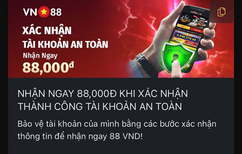 Và nếu thành viên nào thực hiện xác minh ngay khi đăng ký tài khoản, đúng quy trình nhận ngay 88.000đ. Cùng theo dõi quy định ngay bên dưới!